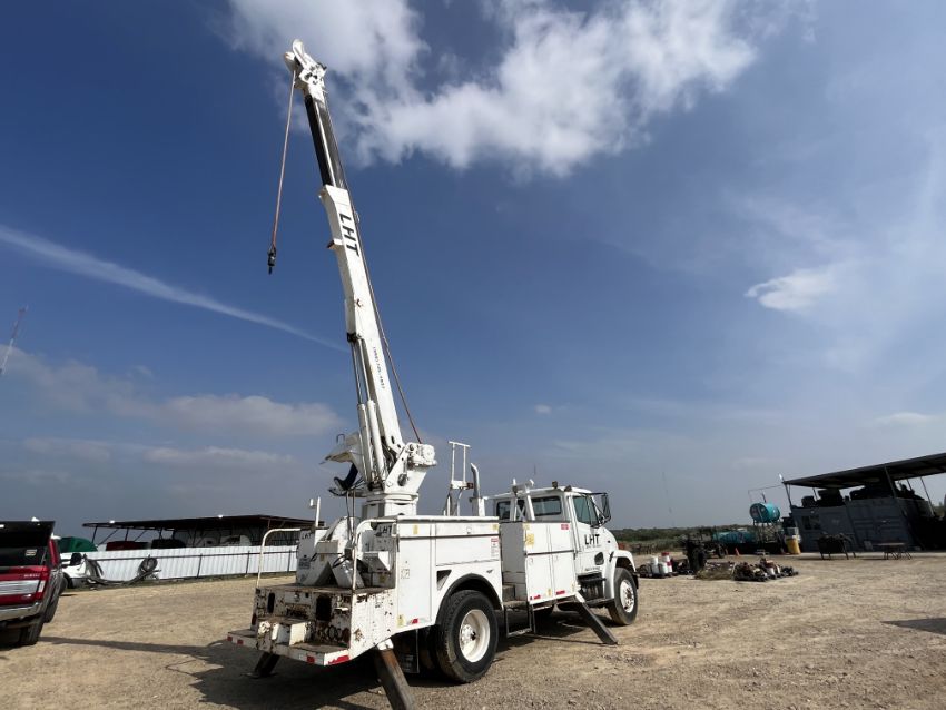 1998 FREIGHTLINER FL70 W/10K COMMANDER CRANE Three section boom, rope line, operator seat & controls, 4 hydraulic outriggers, Caterpillar 3126 w/ Allison automatic transmission, 12k front axle, 22k rears, 188" wheel base 14923