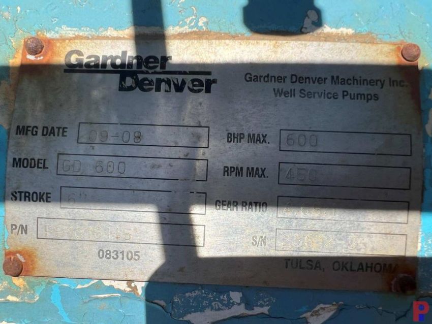 GARDNER DENVER MODEL GD 600 TRIPLEX PUMP VIN/SN: 25612-9, DETROIT SERIES 60 14.0L ENGINE, 665 HP 15769